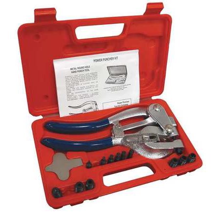 <p>Topp Clip Heavy Duty Punch Tool Kit, Metal, For Use With Can Be Used With Plastic,Nylon Or Metal Strapping. Maximum Strapping Is 1/2 Wide, Includes Heavy duty punch kit suitable for punching up to 4 layers of 14 gauge mild steel strapping. Includes die sizes for holes: 3/32 In., 1/8 In., 5/32 In., 3/16 In., 7/32 In., 1/4 In., and 9/32 In..Recommended hole punch for Topp Clip(r) Pallet Seals (item G4525306).</p> <p><br /><b>Features</b></p> <ul> <li>Includes: Heavy duty punch kit suitable for punching up to 4 layers of 14 gauge mild steel strapping. Includes die sizes for holes: 3/32", 1/8", 5/32", 3/16", 7/32", 1/4", and 9/32".Recommended hole punch for Topp Clip(R) Pallet Seals (Grainger item 16G858).</li> <li>Item: Topp Clip Heavy Duty Punch Tool Kit</li> <li>Material: metal</li> </ul> <p></p>