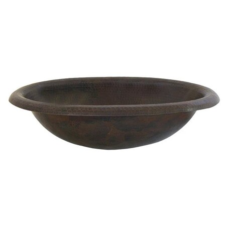 - Small oval Hand-hammered bath sink with rolled lip; Oil Rubbed Bronze strainer drain included