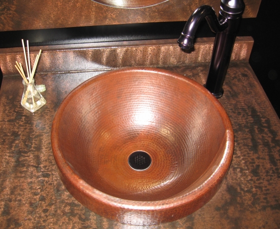 Novatto TCU-014AN GRANADA Round Surface Mount Copper Sink with Antigua Finish 17-Inch Diameter Copper Brown
