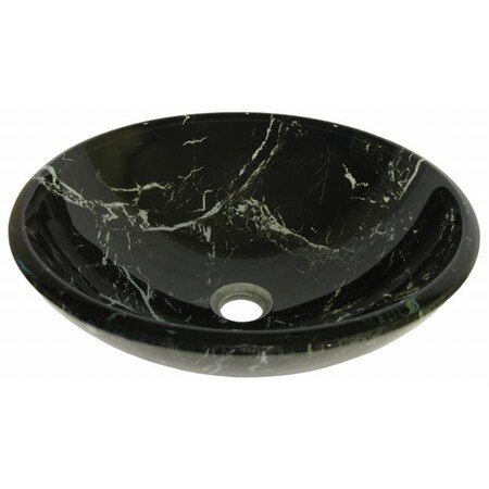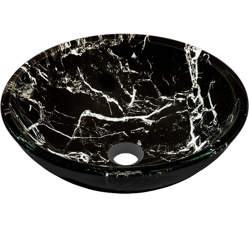 Novatto TID-035 PALLINA Black and White Marble Design Glass Vessel Sink 16.5-Inch Diameter Black White