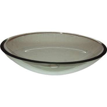 - Clear glass oval vessel sink with brushed nickel hardware