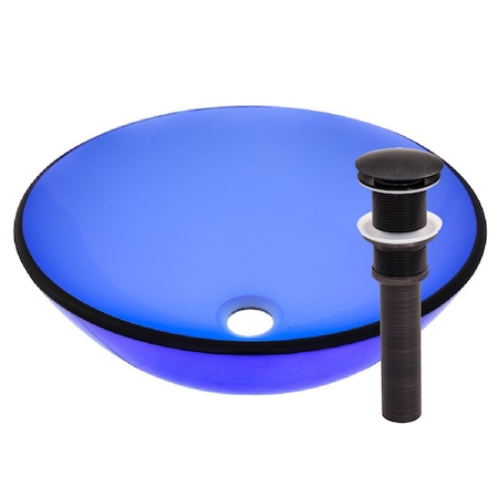 NOVO1463 <br /> <b>Features</b> <br /> <ul> <li>Clear blue glass vessel sink with oil rubbed bronze hardware and glass sealer included</li> <li>High tempered glass, stain and scratch resistant, polished glass</li> <li>Standard U.S. plumbing connection, 1.5" solid brass oil rubbed bronze pop-up drain, mounting ring and glacier ice sealer included</li> <li>Above counter installation</li> <li>Package includes an eco-friendly pre soaked wipe on cloth and one micro fiber cleaning towel</li> <li>Set includes 1 glass vessel sink, 1 pop-up drain, 1 mounting ring and 1 glacier ice sealer</li> <li>Installation Type: Vessel Sinks</li> <li>Style (Old): Modern</li> <li>Sink Shape: Circular</li> <li>Finish: Blue</li> <li>Material: Tempered Glass</li> </ul> <br /> <b>Dimensions</b> <br /> <ul> <li>Overall Length - Side to Side: 16.5"</li> <li>Overall Width - Front to Back: 16.5"</li> <li>Overall Depth - Top to Bottom: 5.75"</li> <li>Overall Product Weight: 15 lbs</li> </ul> <br /> <b>Specifications</b> <br /> <ul> <li>Commercial OR Residential Certifications: Yes</li> </ul>