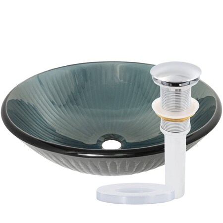 - Grey Stemmed Pattern Glass Vessel Sink with Chrome Pop-Up Drain