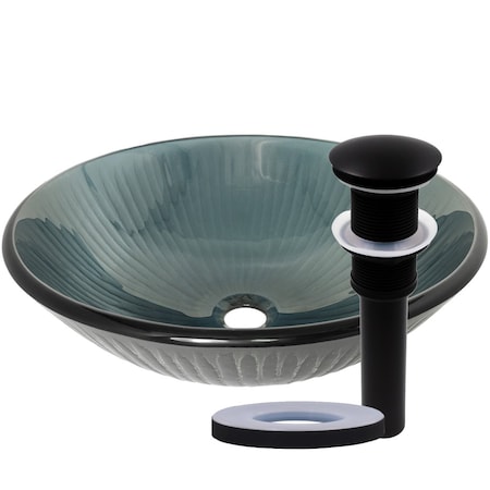 - Grey Stemmed Pattern Glass Vessel Sink with Matte Black Pop-Up Drain