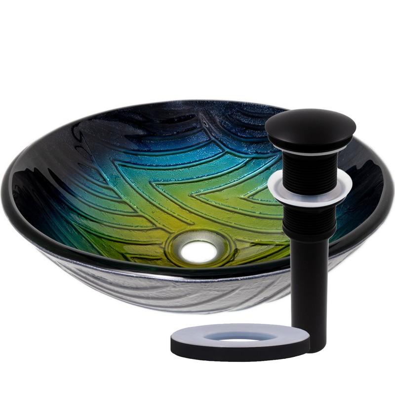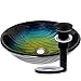 - Hand Painted Blue to Yellow Fade Glass Vessel Sink with Matte Black Hardware Kit
