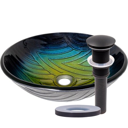 - Hand Painted Blue to Yellow Fade Glass Vessel Sink with Oil Rubbed Bronze Hardware Kit
