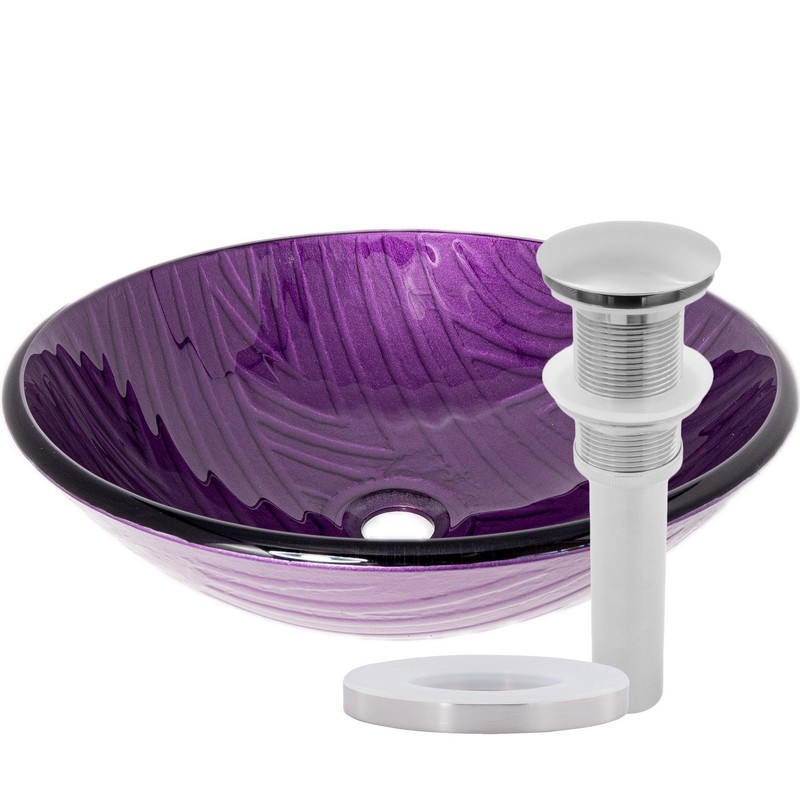 Novatto Purple Painted Glass Vessel Bathroom Sink Set, Brushed Nickel