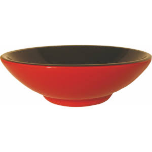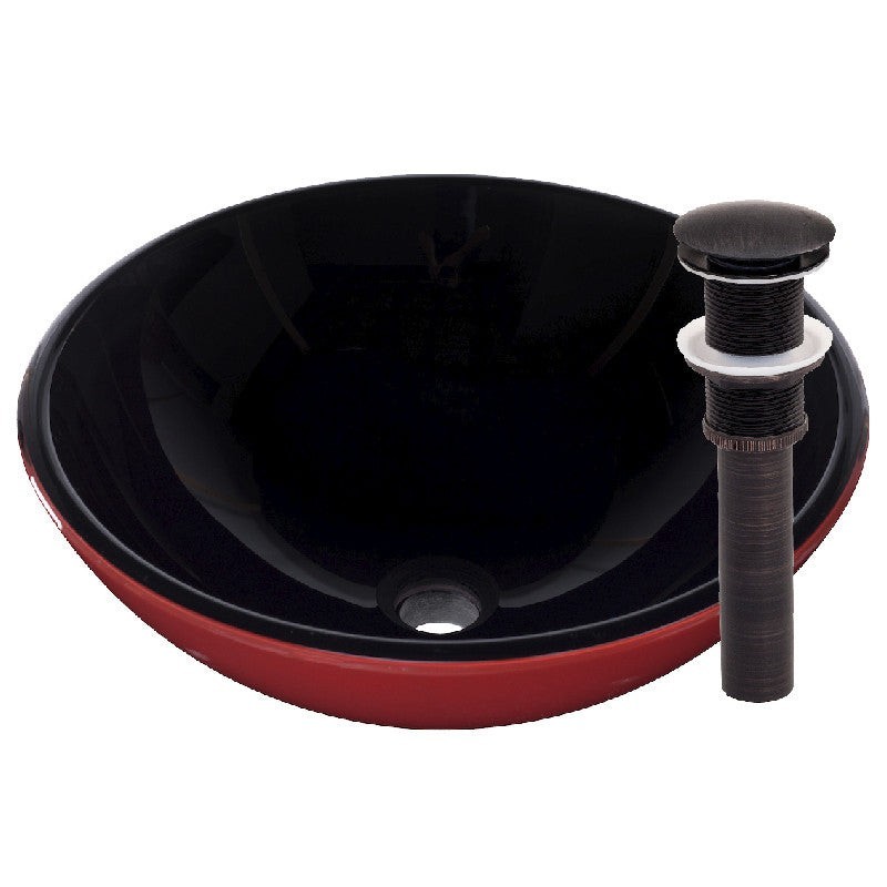 - Solid red and black glass vessel sink with oil rubbed bronze hardware