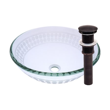 Constructed of thick 1/2-inch clear high tempered glass, Imponeren has a classic etched design. As an industry leader, Novatto uses advanced technology to produce beautiful glass vessel sinks with unmatched structural integrity and longevity. Tempered glass cannot be compared to everyday synthetic porcelain and ceramics. Internal testing has found these vessels to be very durable and forgiving. Items such as toothbrushes or small jewelry should not scratch the surface. Made with the highest standards of quality and creative design, Novatto sinks add art and function to any decor at an affordable price. The Imponeren vessel has a standard 1.75-inch drain opening. The set includes an oil rubbed bronze pop-up drain and matching mounting ring. For best cleaning results, apply the included Glacier Ice as recommended. Novatto's Glacier Ice wipe-on treatment is a hydrophobic sealer used on glass, ceramics and faucets. Glacier Ice prevents corrosion, oxidation and dirty mineral buildup caused by hard water! Apply just once a year to keep your sink or faucet looking like new. Novatto's customer service is always here to answer any additional technical product questions or help you choose a matching faucet.