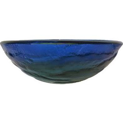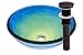 - Blue, yellow, and green glass vessel sink with oil rubbed bronze hardware