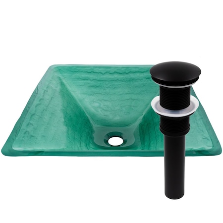 - Frosted Green Square Glass Vessel Sink with Matte Black Hardware Kit