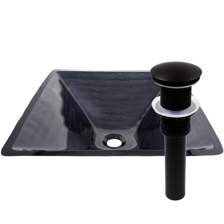 - Frosted Grey Square Glass Vessel Sink with Matte Black Hardware Kit