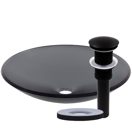 - Clear Grey Glass Vessel Sink with Matte Black Drain, Mounting Ring and Sealer
