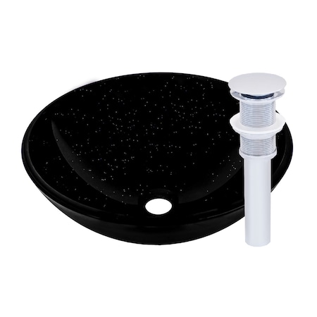 - Solid black with sparkles glass vessel sink with chrome hardware