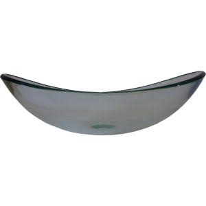- Clear glass oval slipper vessel sink with brushed nickel hardware
