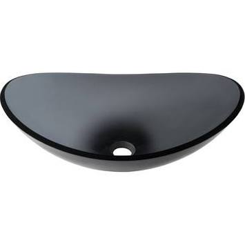 - Clear grey glass oval slipper vessel sink with chrome hardware