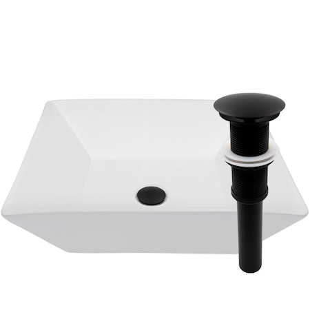 - Glossy White porcelain Square Vessel Sink with Matte Black Pop-up and Glacier Ice Sealer
