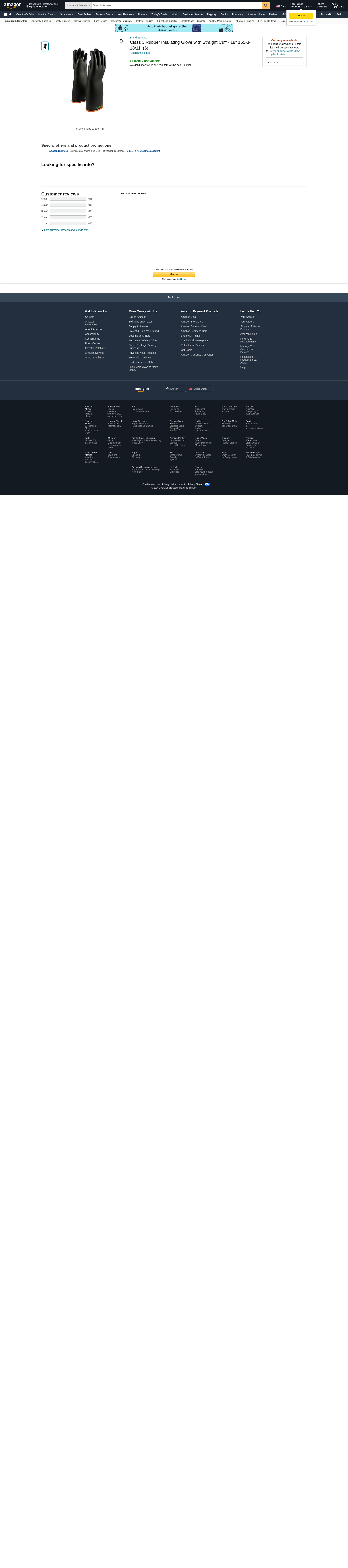 NOVAX 155-3-18/11 Class 3 Rubber Insulating Glove with Straight Cuff, 18"