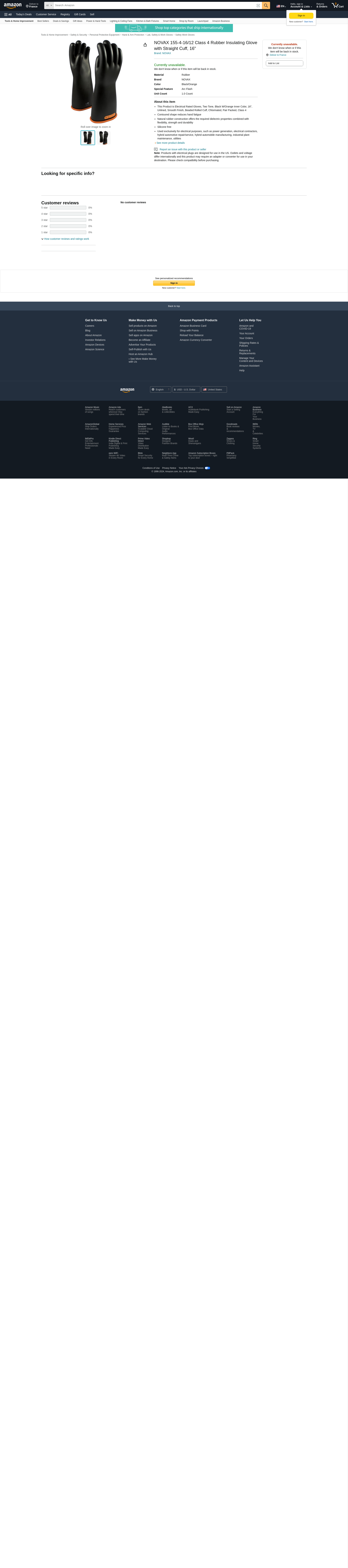 NOVAX 155-4-16/12 Class 4 Rubber Insulating Glove with Straight Cuff, 16"
