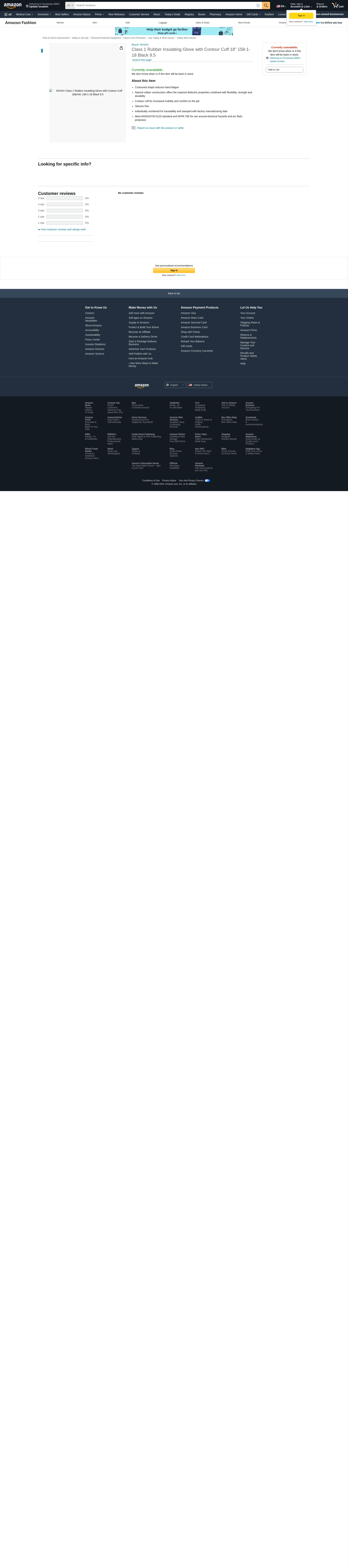 NOVAX Class 1 Rubber Insulating Glove with Contour Cuff 18" 158-1-18 Black 9.5