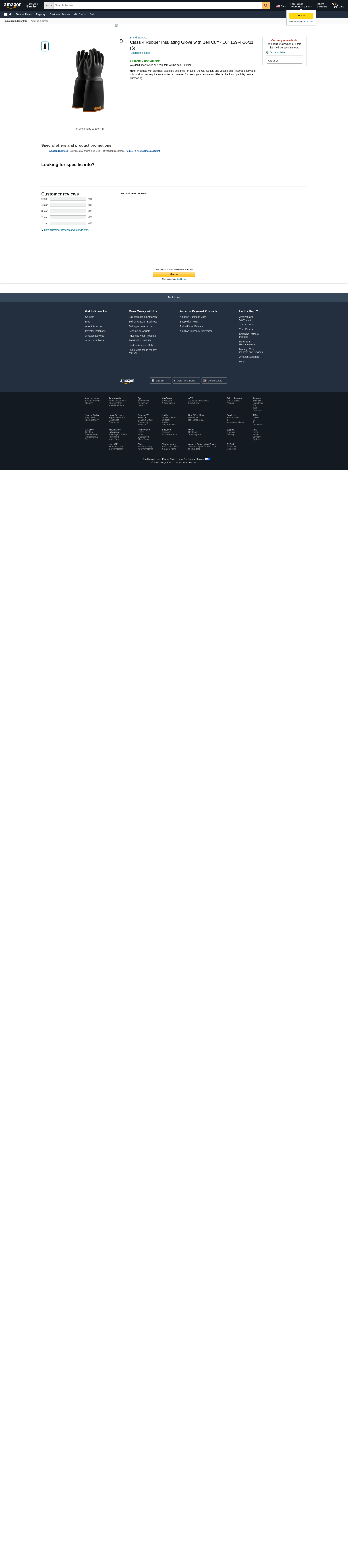 NOVAX 159-4-16/11 Class 4 Rubber Insulating Glove with Bell Cuff, 16"