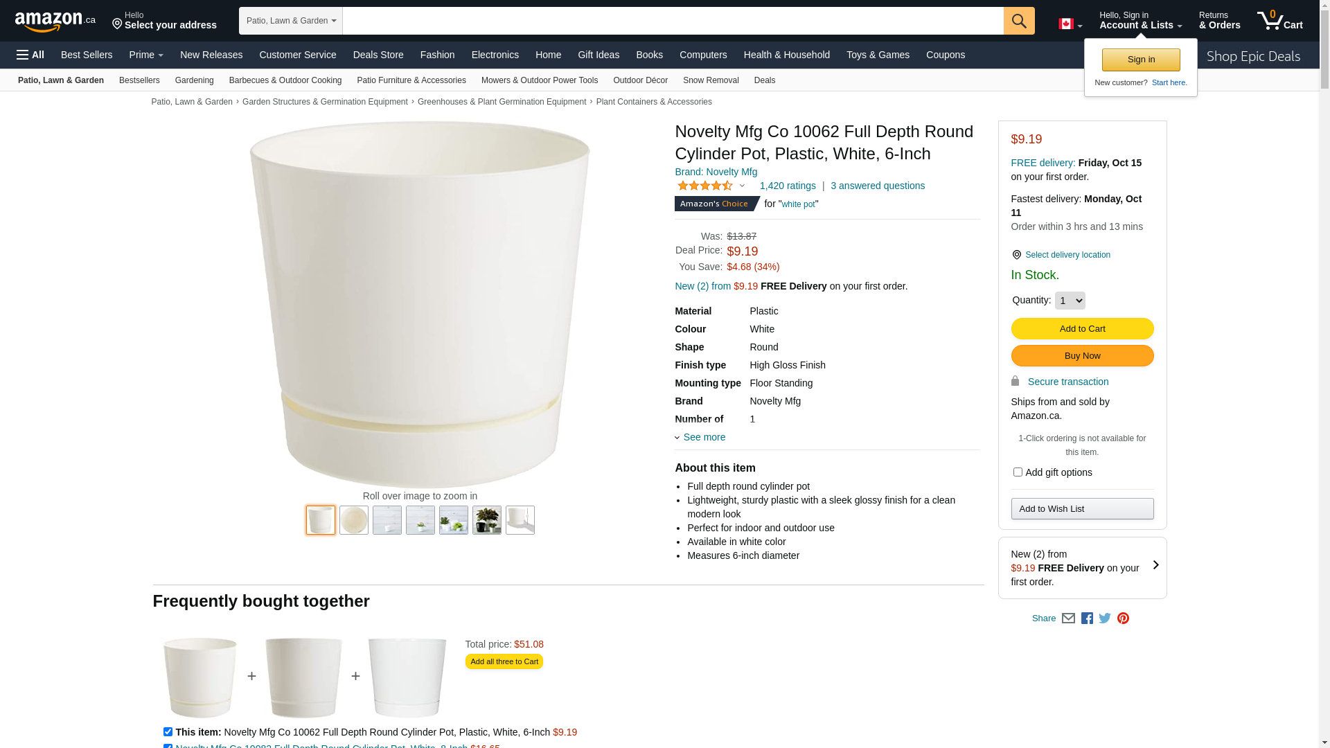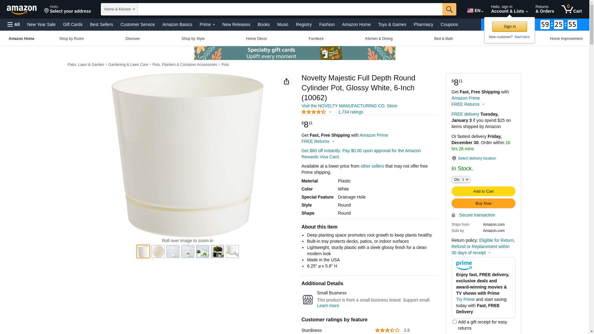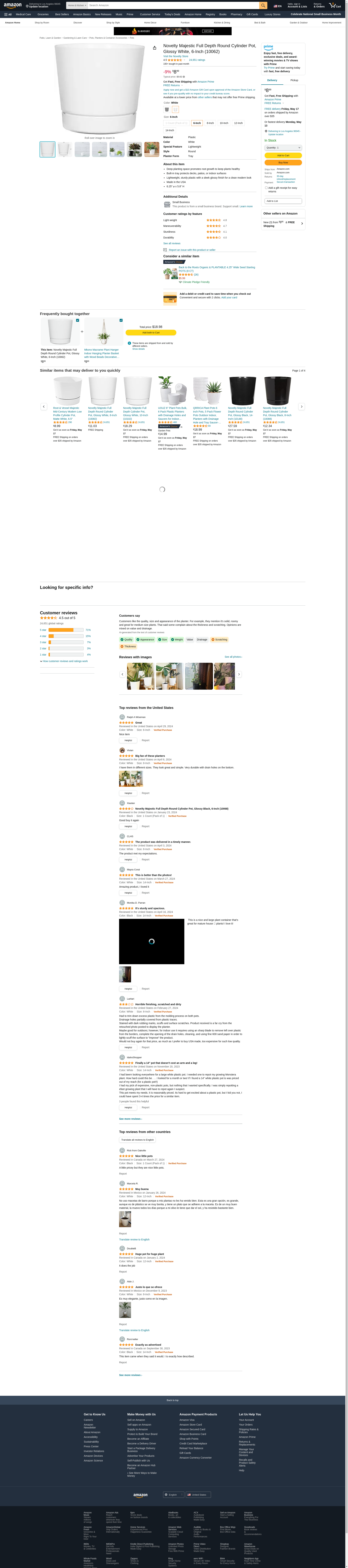 Novelty Majestic Full Depth Round Cylinder Pot, Glossy White, 6-Inch (10062)