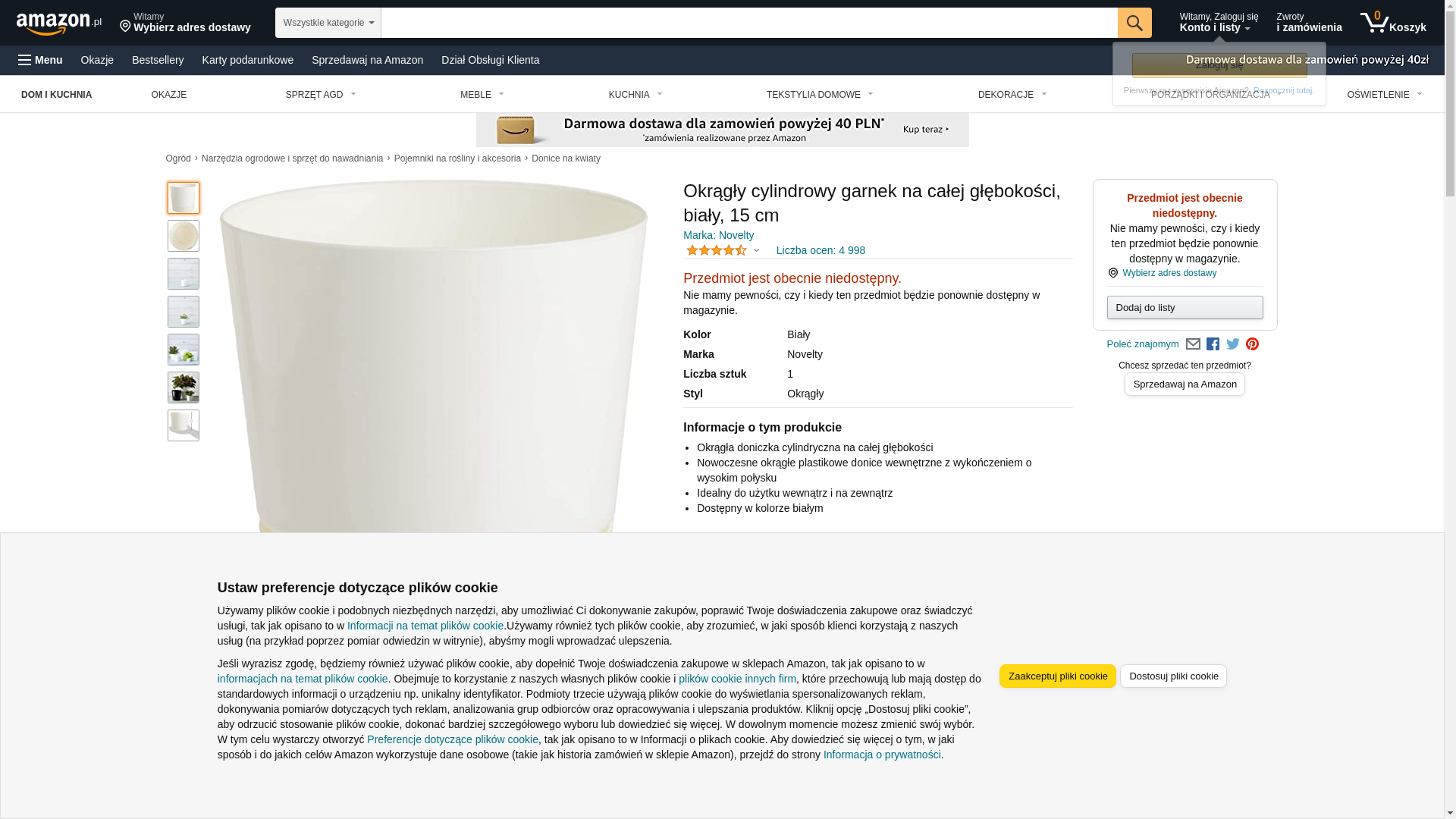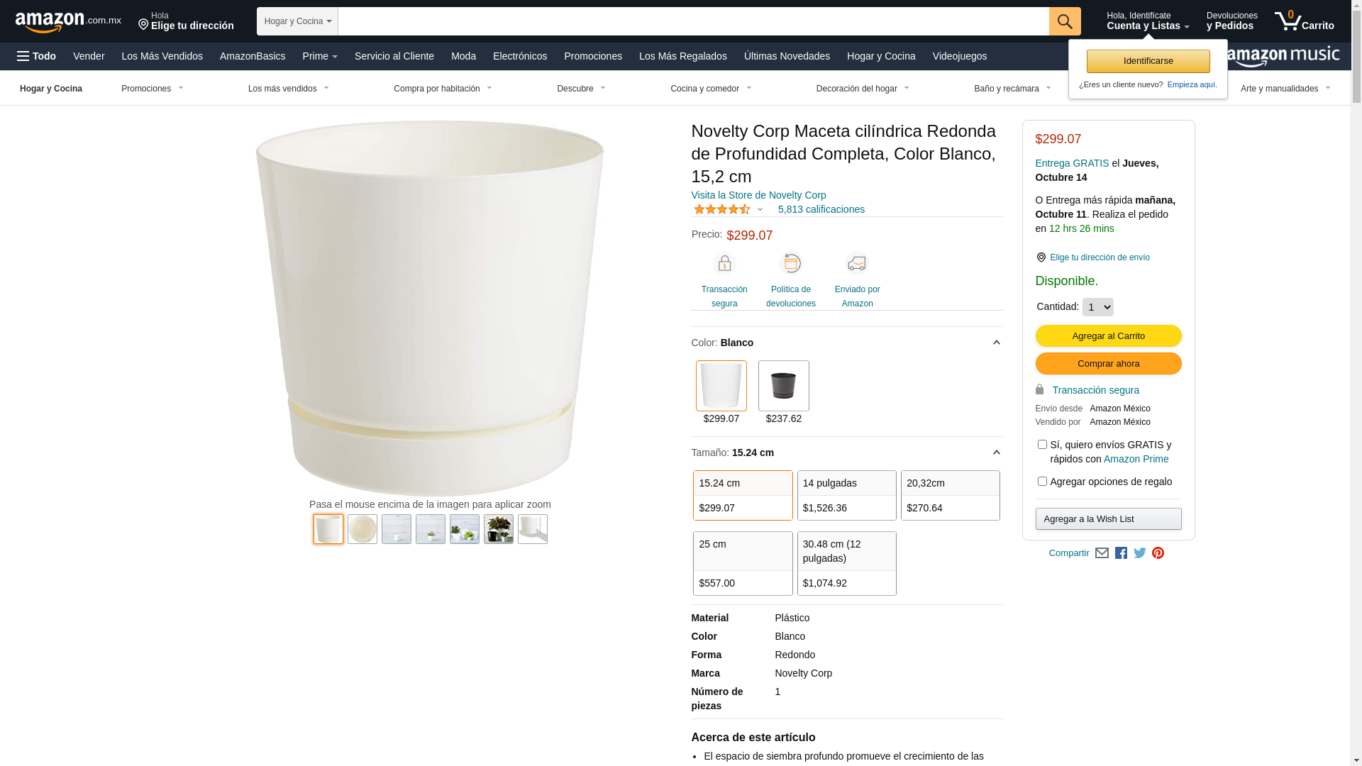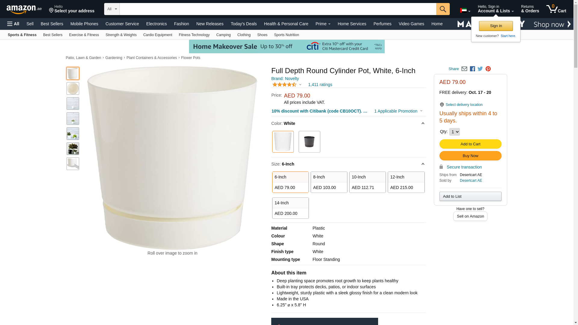 Novelty Majestic Full Depth Round Cylinder Pot, Glossy White, 6-Inch (10062)