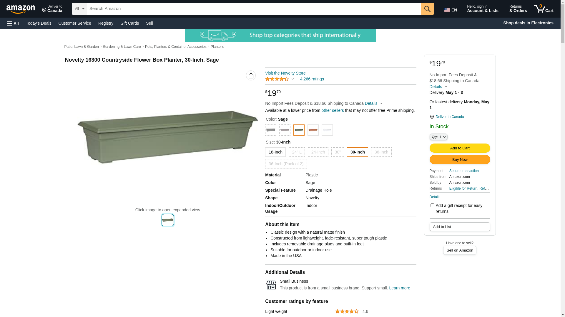 Novelty 16300 Countryside Flower Box Planter, 30-Inch, Sage