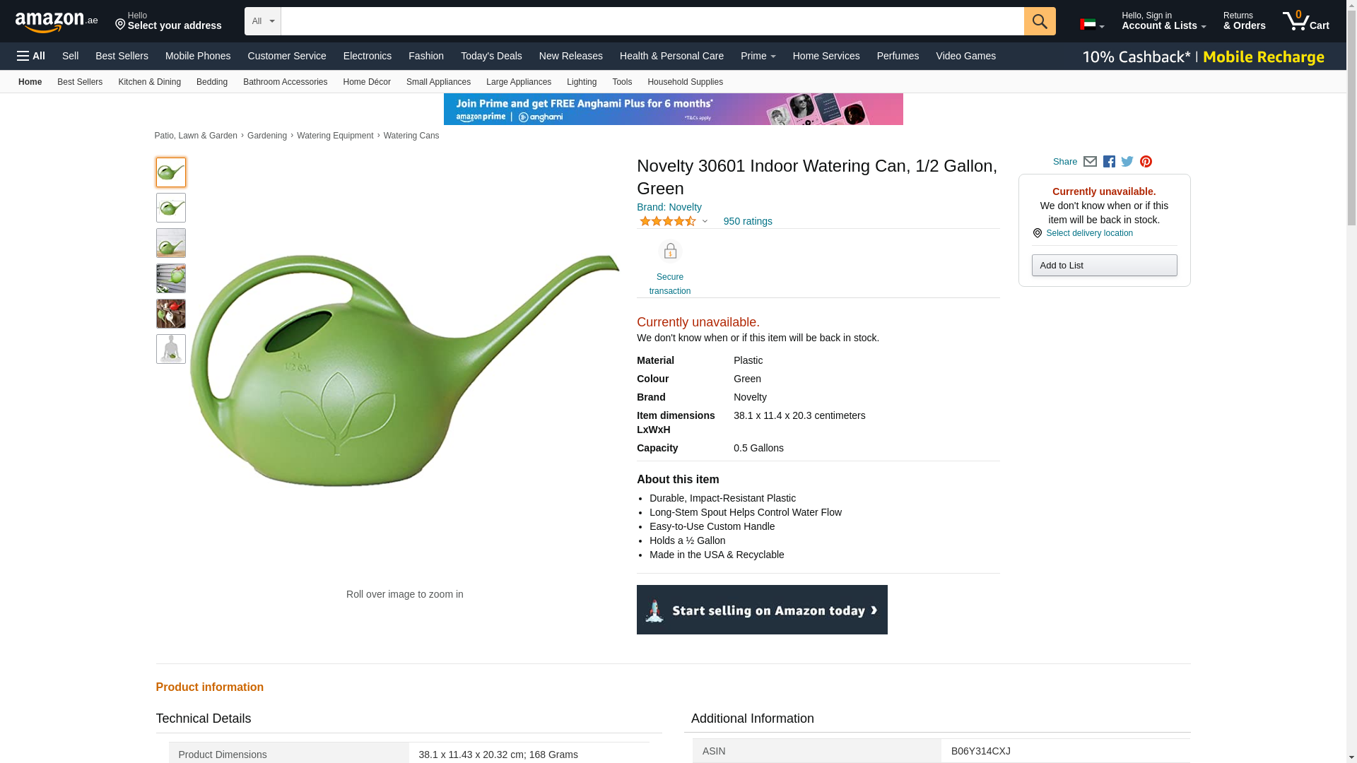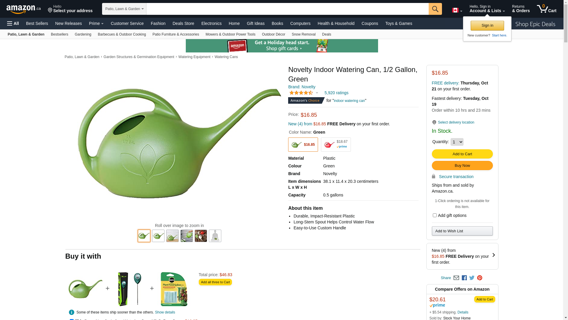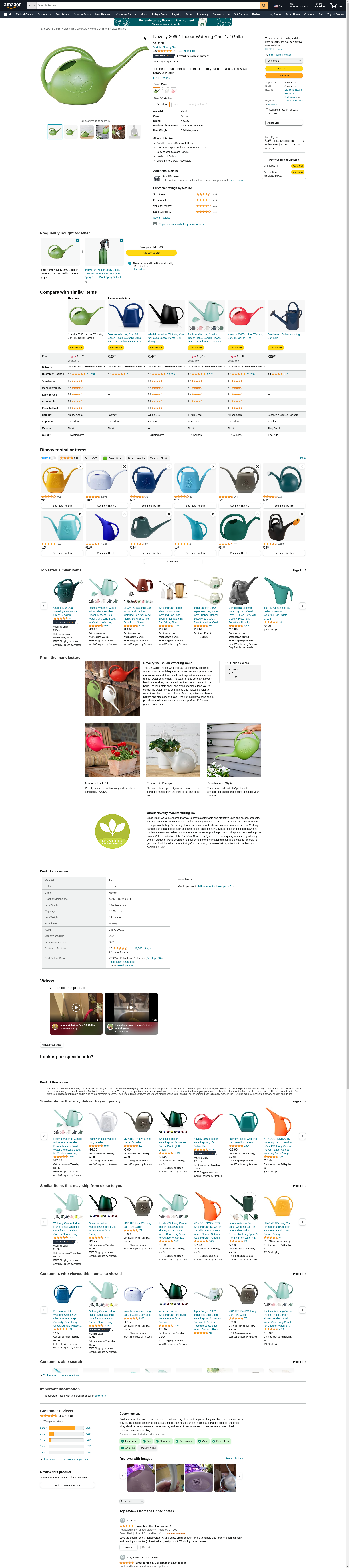 Novelty 30601 Indoor Watering Can, 1/2 Gallon, Green