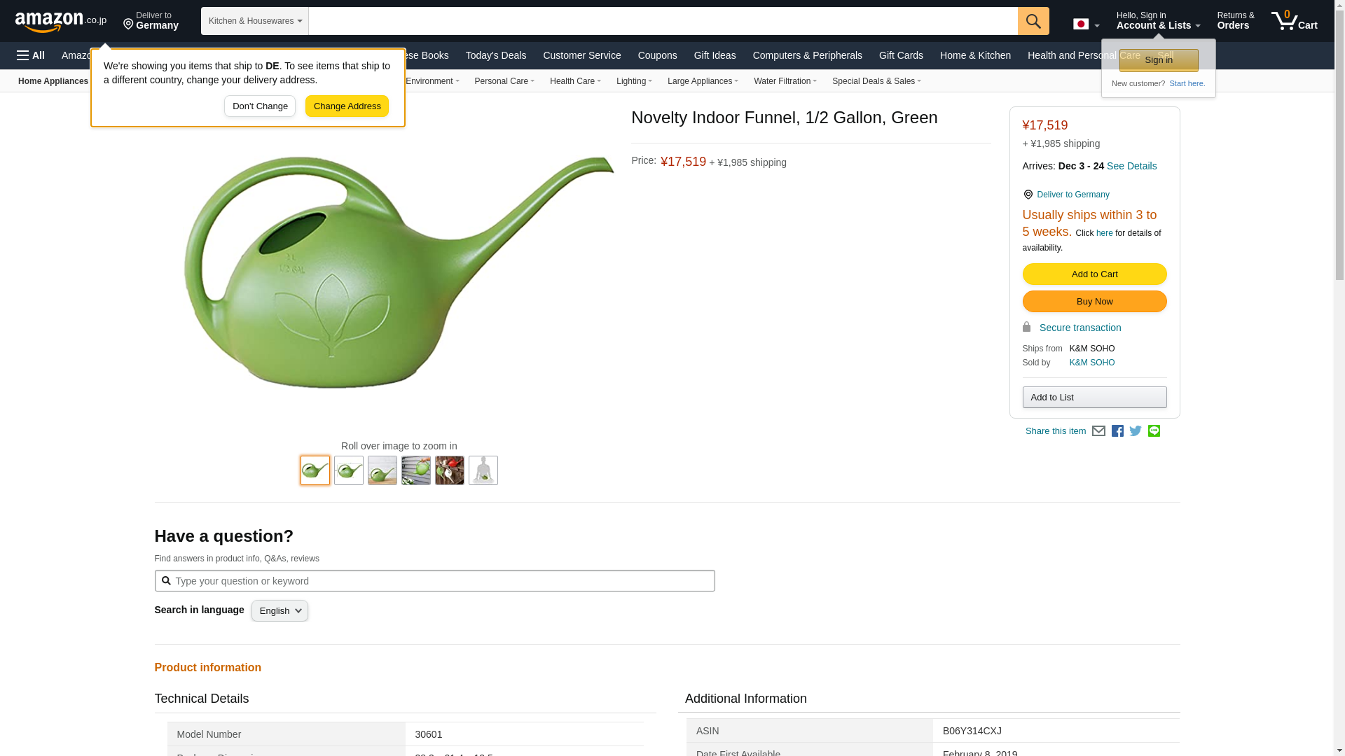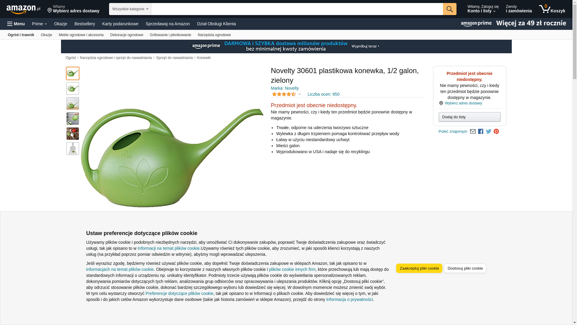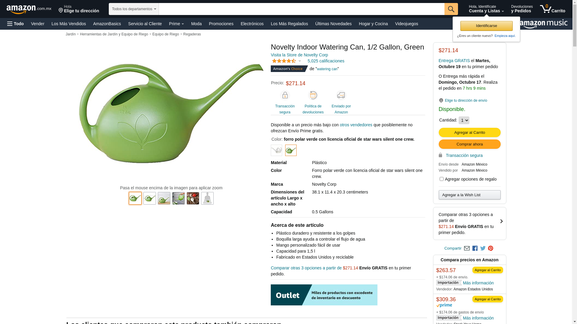 Novelty 30601 Indoor Watering Can, 1/2 Gallon, Green