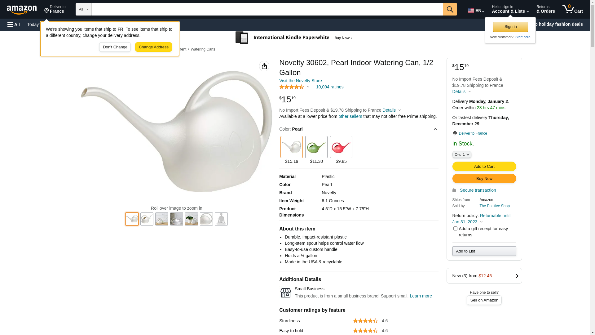 Novelty 30602 Indoor Watering Can, Pearlescent White, 1/2-Gallon - Quantity 1