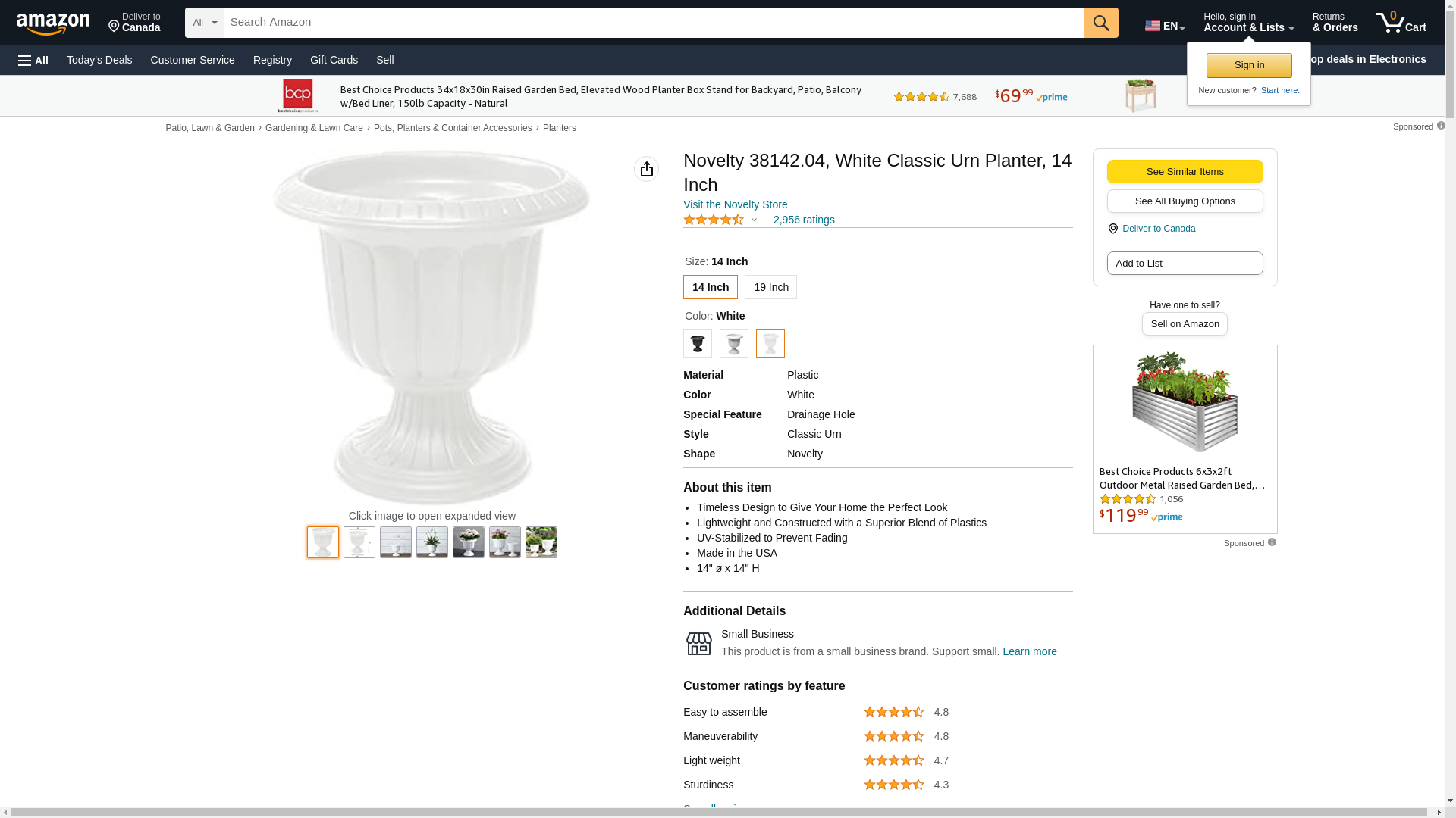 | Feature | Set of(2) : Novelty 38142 14" White Classic Porch Urns |