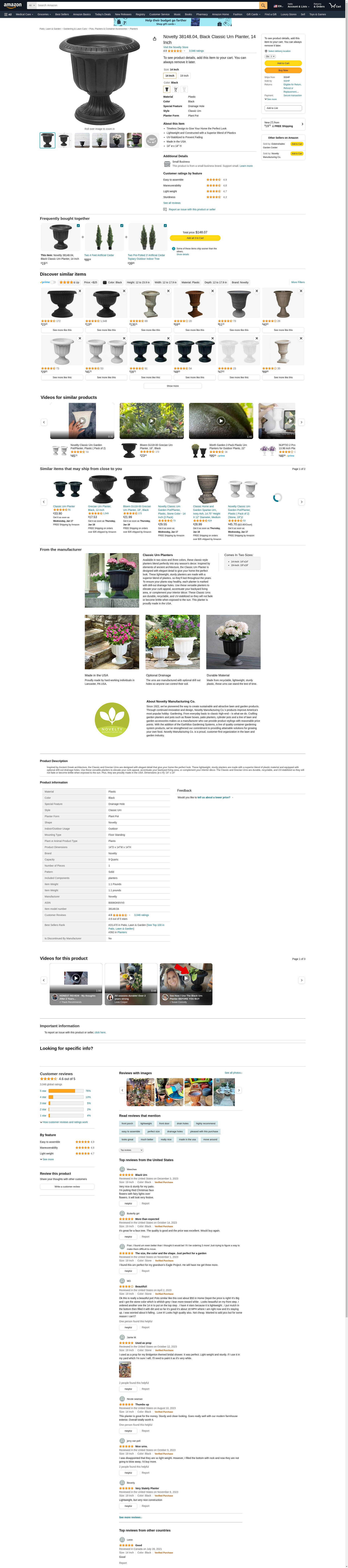Novelty Mfg 38148 14" Black Classic Porch Urn Plastic Planters - Quantity 5