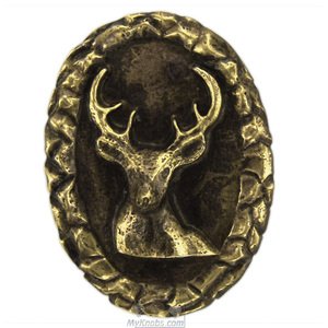 Wildlife Collection - Small Whitetail Oval Knob in Antique Brass by Novelty Hardware - KB00306-1200 | MyKnobs