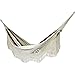 NOVICA Dark Green Brown White Stripe 2 Person Cotton Brazilian Hammock with White Crochet Fringe, Joyous Earth' (Double)