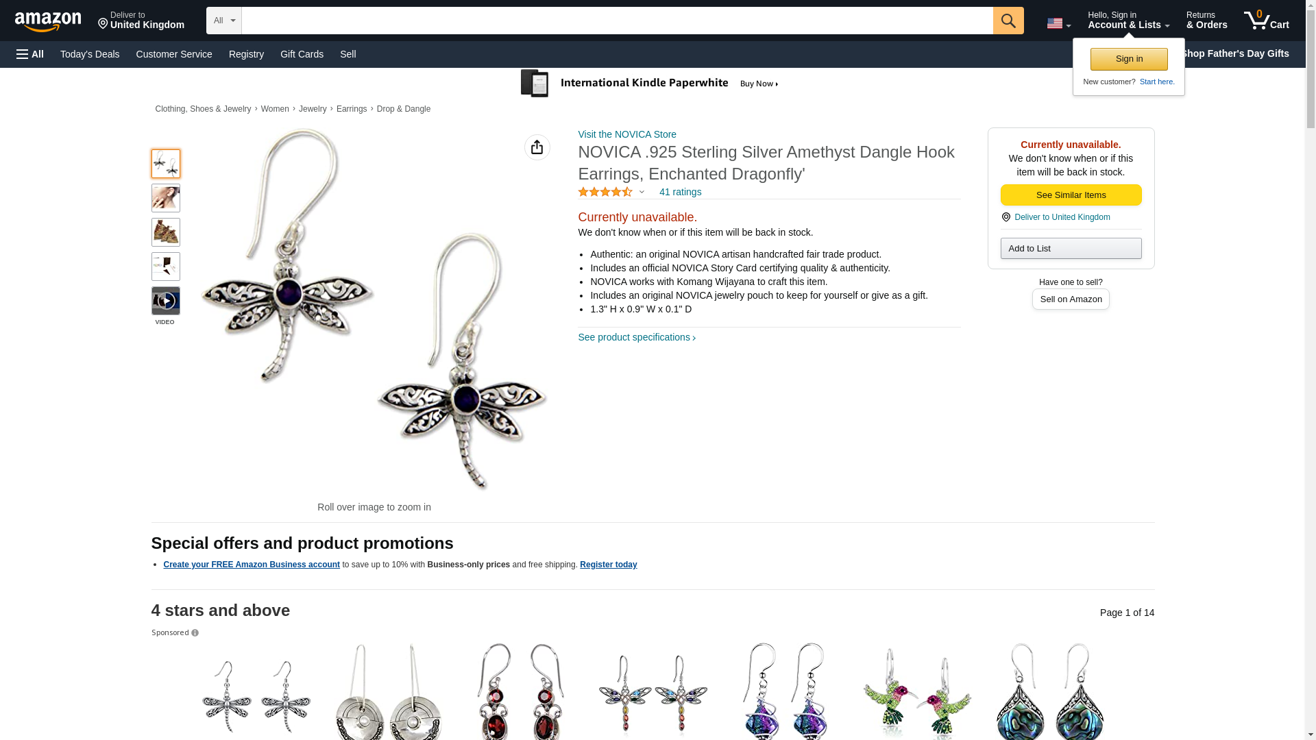 NOVICA .925 Sterling Silver Amethyst Dangle Hook Earrings, Enchanted Dragonfly': Maxedbuy.com