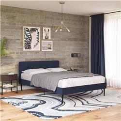 Novogratz DA4060629N Freddy Upholstered Bed with Full Size Frame, Blue Linen - 33.5 x 58.5 x 77.5 in.