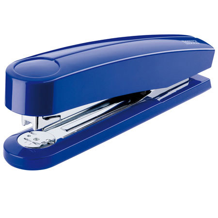 * Throat Depth: 4 1/8" * Dimensions: 7" x 1 1/2" x 2 1/2" * Sheet Capacity: 40 Sheets * Stapling Modes: Clinch, Pin, Tack * Available Color: Blue * Warranty: 25 Years Additional Features: * High performance executive stapler with steel driven mechanism * Dual staple guide encases the staples & provides superior performance and reliability * Push button for easy front loading of staples * German engineered for quality and durability * Gentle pressure allows for easy operation Description: Novus Executive Staplers can be found in the offices of professionals throughout the world. They are high performance devices that features a steel driven mechanism and dual staple guide. These features provide superior performance by reducing jamming and ensure each leg of the staple has even pressure until they clinch your documents. Developed in Germany, Novus Executive Staplers are designed to improve productivity and efficiency at work. Whether you need to staple a few sheets of paper, or a stack of 40 pages, these staplers will help you get the job done faster and with less effort. Novus Executive Staplers offer versatile Tri-Mode stapling capability to produce either a permanent standard clinch, temporary pin, or tack. The temporary pinning mode allows you to easily remove the staple from the back of the document without any other device. This eliminates the need for paper clips or other temporary fasteners. The tacking mode is convenient for attaching documents to a wall or corked surface such as a bulletin board. Each mode is easily attained by rotating the circular anvil at the base of the stapler. Novus offers two sizes of Executive Staplers: the compact B4 and the B5. Both are available in black, blue and grey.