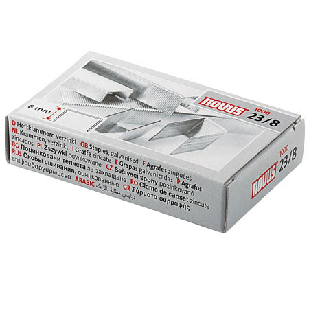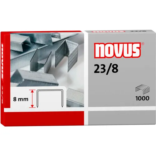 Novus 042-0040 Box of 1000 Heavy-duty Premium Staples; 23 gauge/8mm; Precision Formed and Glued; Made out of Galvanized Steel Wire; Compatible with B40 HD, B50 HD, B56 HD, and B56 XL HD Novus Staplers