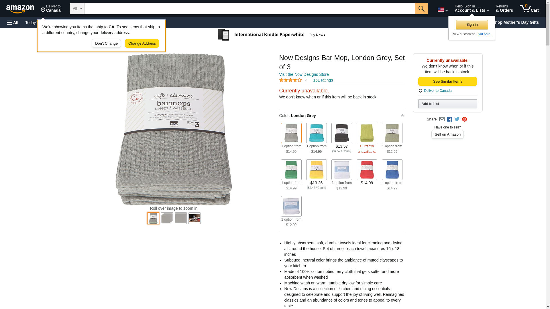 Now Designs Barmop Towel, London Grey, 3 Count