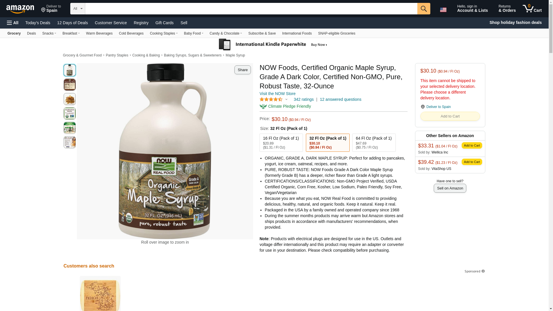 NOW Foods Organic Maple Syrup,Grade A Dark Color, 32-Ounce
