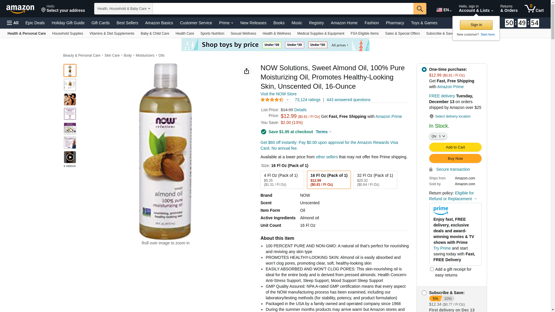 NOW Solutions, Sweet Almond Oil, 100% Pure Moisturizing Oil, Promotes Healthy-Looking Skin, 16 Fl Oz (Pack of 1): Maxedbuy.com