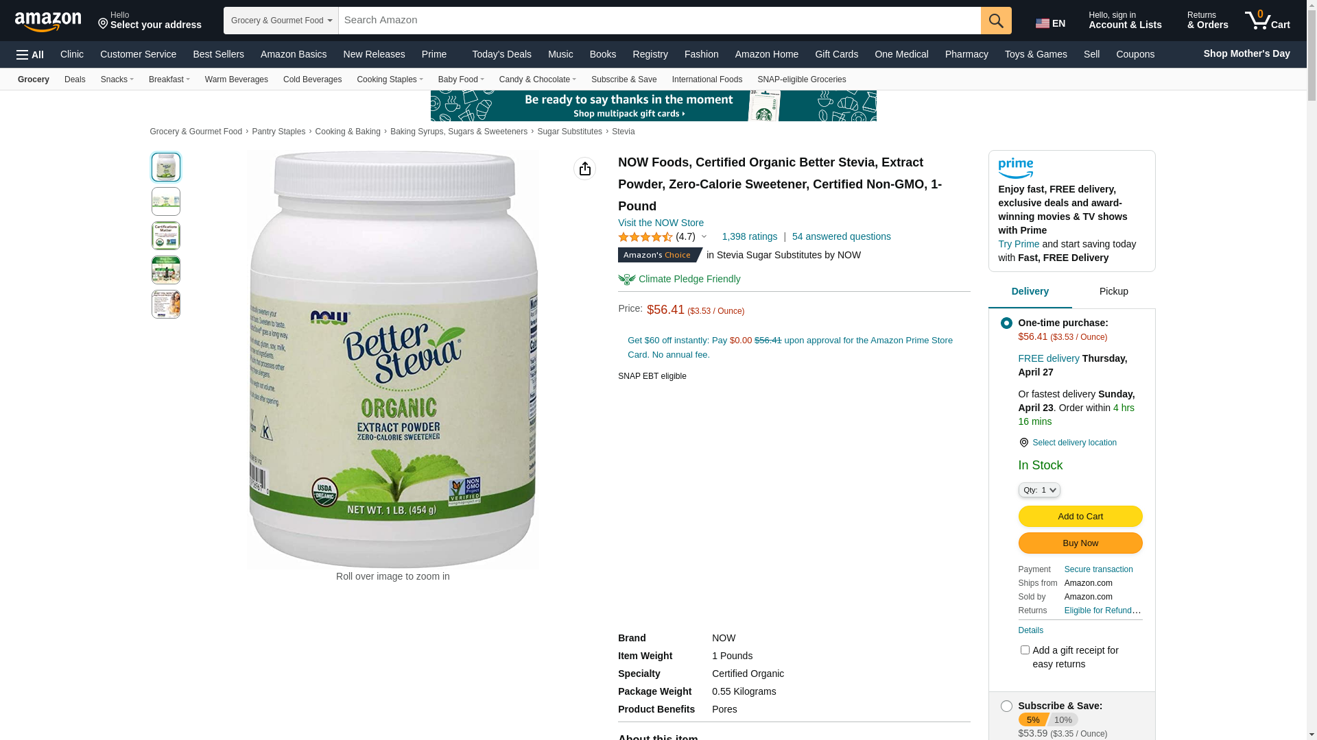 NOW Foods, Certified Organic Better Stevia, Extract Powder, Zero-Calorie Sweetener, Certified Non-GMO, 1-Pound: Maxedbuy.com