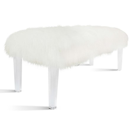 <b><br />Scarlett 48" Faux Fur Bench Acrylic Base, White:</b> <br /> <ul> <li>Faux sheepskin upper</li> <li>Acrylic frame</li> <li>Length: 48"</li> <li>Style: Contemporary/eclectic white faux fur bench</li> </ul>