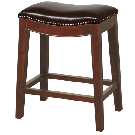 <br /> <b>Elmo Bonded Leather Counter Stool, Brown:<br /></b> <ul> <li>Provides additional seating space</li> <li>Leather counter bar stool with saddle-style seat</li> <li>Finished with nail-head trim in silver</li> </ul>