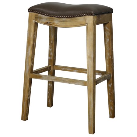 Elmo Bonded Leather Bar Stool Weathered Smoke Legs, Vintage Dark Brown