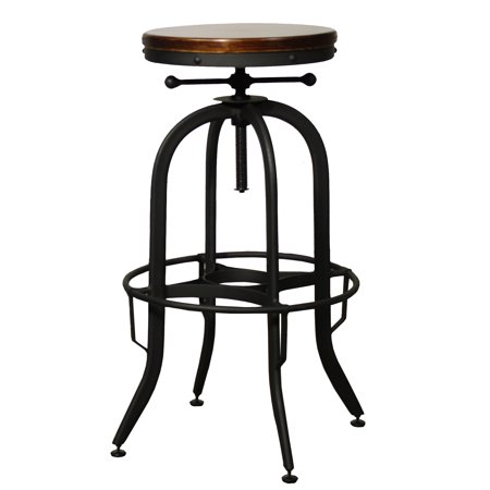 <br /> <b>Industrial Vintage Bar Stool, Black:</b> <br /> <ul> <li>Four legs and pine wood seat</li> <li>Made with sturdy metal construction</li> <li>Industrial bar stool with attractive vintage design</li> <li>Seat height is adjustable with turn crank</li> <li>Ideal for home kitchens, restaurants, bars and coffee shops</li> <li>Decorative and comfortable</li> <li>Natural color wood</li> <li>Height: 33"</li> <li>Weight: 18 lbs</li> <li>Color: black</li> </ul>