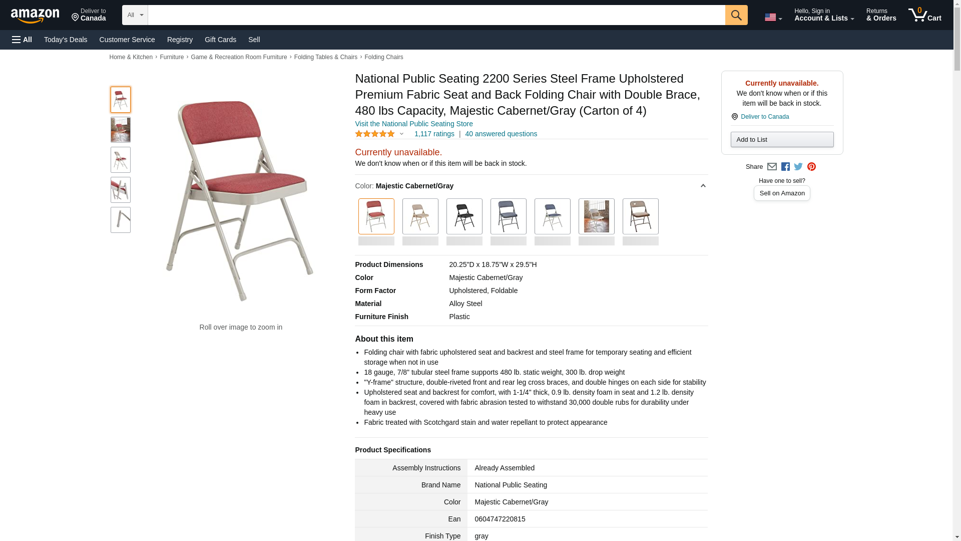 National Public Seating 2200 Series Steel Frame Upholstered Premium Fabric Seat and Back Folding Chair with Double Brace, 480 lbs Capacity, Majestic Cabernet/Gray (Carton of 4)