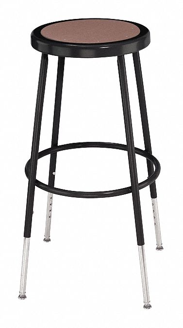 Round Stool, Height Range 25" to 33", Masonite Board Black