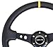 NRG Reinforced Sport Steering Wheel 350mm 3 Inch Deep Black Spoke Round holes Black Leather Yellow Stripes | RST-006BK-Y